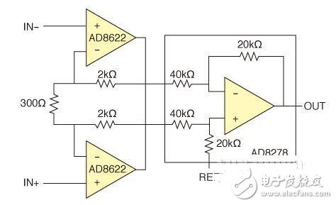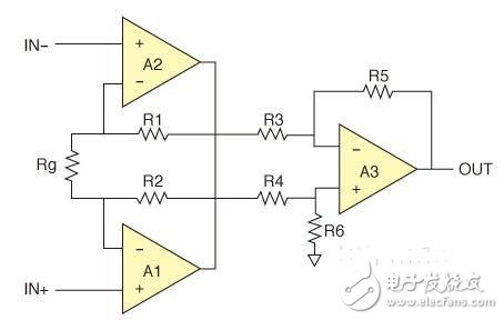 图1,标准仪表放大器配置。