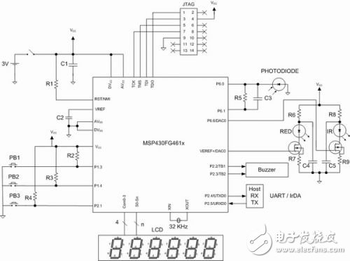 图4 基于MSP430FG461x的脉搏血氧计