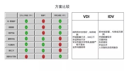 那么,两种方案具体适用于什么操作环境呢?巩天宁介绍,瘦终端方案适用于网络条件非常好、终端数量不多、外设种类不多、数据要求非常高,且业务场景简单的情况,而胖终端则适用于跨地域部署、终端数量多、注重体验、外设众多、人员角色及应用复杂的情况。