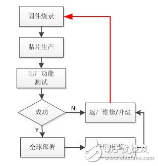 改进后的流程将固件生产、功能测试整合为一体,规划出一个新型的生产测试设备,可随时随地对设备进行生产、升级、维修、测试。用户仅需将该设备部署到需要覆盖的各个网点,即可解决升级、维修等问题。该流程更加方便、更加高效,而且会减少终端用户因故障返修影响正常使用等问题。