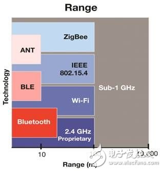 由于 PAN 以低功耗(一般为电池)为特点,因此我们选择蓝牙reg; 和 ZigBeereg; 这两种技术作为以后几代康体佳兼容型远程医疗系统的无线标准。蓝牙技术一般用于移动集成管理器(例如:智能电话)和传感器或医疗设备之间的连接;而 ZigBee 则用于低功耗传感器的无线组网,比如一些让患者能够独立在家的传感器。PAN 网络的连接距离一般为1米到 10-20 米,接入 PAN 网络的大多数设备都使用电池供电。