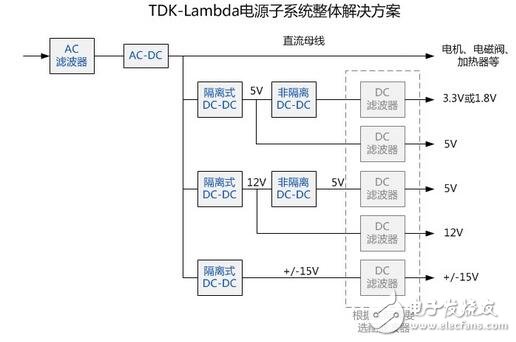下图为TDK-Lambda提供的某款体外诊断仪器内部电源子系统整体解决方案。