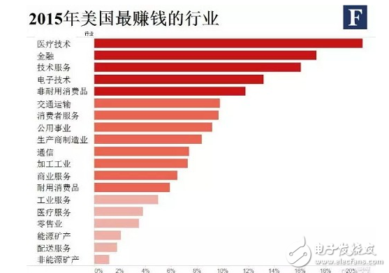 医疗技术一直是美国最赚钱的行业之一,2015年也不例外,其净利润率一直随着该行业的营收稳步攀升。