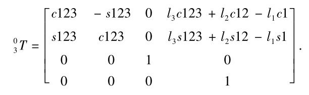 由表 2 中的参数,可求出末端的位姿矩阵: