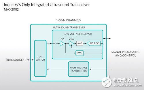 Maxim Integrated的低噪声超声收发器能够为一个标准超声系统节省40%的电路板空间,省去上千颗分立元件。