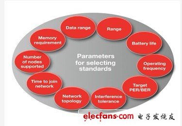 选择一种特殊的网线连接标准或者技术是一系列折中平衡与优化的结果。我们可以根据诸多参数对各种无线标准进行比较,例如:规定数据速率、网络拓扑、传输距离等等。这些参数就是度量标准。图 2 显示了选择远程医疗与医学应用的无线标准时进行对比的大多数参数。下面列出的度量标准并非都与特定应用相关,度量标准的多少和种类均取决于具体的终端应用。