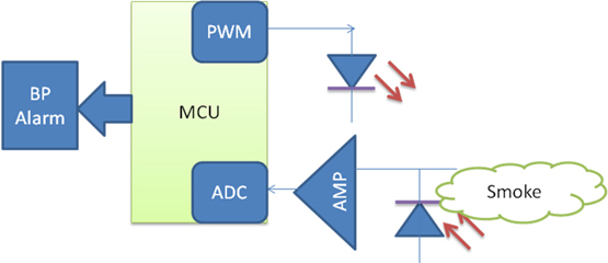 烟雾传感器构成的报警器,能及时报告火警。在烟雾传感器中,安装着一种对烟雾气特别敏感的半导体材料,如氧化锡、氧化锌等,因而亦称它们为气敏材料。在有烟雾气的环境中,当烟雾气的浓度达到一定量值时,气敏材料内部的电阻值就会迅速下降。一旦烟雾气消失,它们的电阻值又会恢复正常。另外一种烟雾检测的方法是,利用红外光线被烟雾遮挡而造成红外接收测电流变化而报警的原理。光电方式又分前向散射与后向散射探测方式,传感器安装在光学迷宫里,没有烟雾时传感器接收不到或只接收到很微弱的光信号,经过放大器放大,逻辑判断电路不做报警处理,有烟雾进入迷宫时,光线照射到烟雾粒子上产生散射,传感器接收到比较强的光信号,经放大后,逻辑报警电路发出警报信号。在这些应用中,运算放大器是其中的关键器件,要求超低功耗,低偏置电流,低噪声。