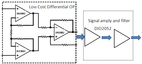 帝奥微电子的DIO2052在血氧仪应用中,扮演了非常关键的角色。第一级用3个运放搭建成全差分模式作为信号的输入级,提供了很高的共模抑制比,较宽的信号动态范围,最重要的是省掉了昂贵的仪表运放。第二级用两个运放作为信号放大和有源滤波器设计,具有良好的信噪比和低失调。在血氧仪的应用中,使客户取得了非常高的性价比,提高了产品的竞争力和加快了上市时间。