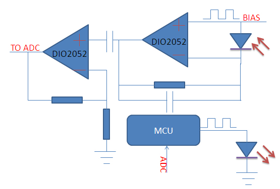 在这个光电式烟雾感应器的设计中,设计师采用的DIO2052非常符合设计的要求。DIO2052具有极低的偏置电流(<1pA),这样可以保证远小于红外管的暗电流,提高了感应器的可靠性;DIO2052具有极低的功耗(<18uA),使得简易电池供电烟雾感应器可以长时间工作,即便是组网的烟感,也可以让更多的终端连接到消防控制中心上;DIO2052良好的共模抑制比,低噪声等特点,保证了电路良好的性能和产品的可靠性,符合消防产品的设计理念。