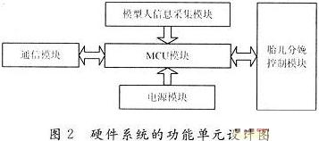 从功能方面,硬件系统分为模型人信息采集模块、系统通信模块、电源模块和胎儿分娩控制模块四个部分,如图2所示。