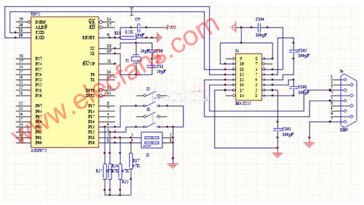 通过扩展外围电路,实现了对生理参数数据的采集、键盘操作、生理参数LCD显示和自动报警等。LCD我们采用G191液晶模块,192×128点阵,点尺寸为0.33×0.33mm,点距为0.04mm,驱动电源为+5V和-20V。液晶控制器我们采用SED1335,该控制器用于接收来自控制模块的各种指令和数据,产生相应的时序对液晶屏进行控制显示,SED1335的软件功能非常强大,而且自带数据RAM,并可自行管理显示缓存区,方便我们使用。
