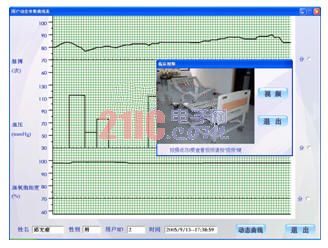 (1)监护功能:生理参数监护仪长期连续地检测出监护对象的各项生理参数,并通过网络将数据传送至远程监护中心服务器,远程中心服务器对数据进行实时处理和分析,识别出疾病的早期信号、异常情况和监护对象健康状况的变化。本系统可实现对心电、血压、血氧、脉搏、呼吸、体温六项生理参数的监测。通过视频,社区远程监护中心可以实时观察监护对象的身体状况和精神状态。