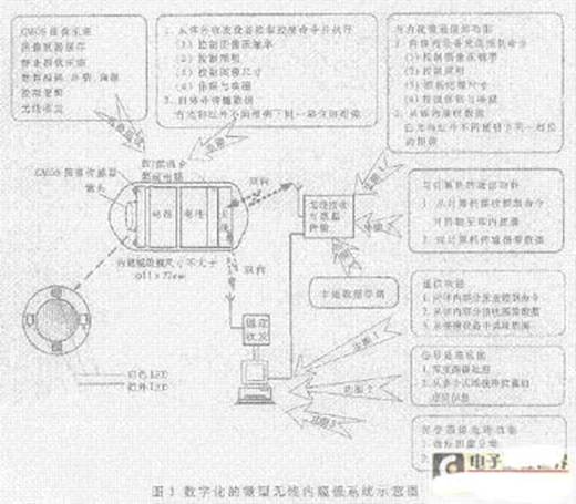 胶囊内硬件电路是整个无线内窥镜系统中最核心的部分,其功能是完成对内窥镜彩色图像的采集,并以无线方式把图像传出至体外,同时能接收来自体外的控制命令,并根据控制命令调整胶囊内硬件的工作状态与工作参数。其关键技术是:采集反映消化道病变情况的高清晰度二维和三维内窥图像、对采集图像进行高效地无线传输、对电路进行低功耗设计以及系统能量管理等技术。胶囊内电路主要包括以下三部分。