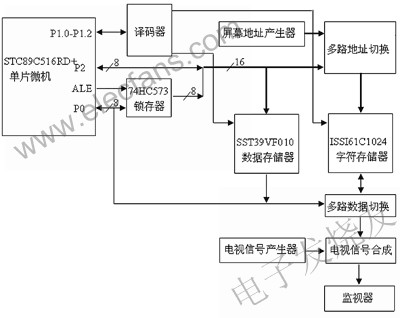 RAM,利用其内部资源不需要再扩展外部程序存储器,译码器、屏幕地址产生器、多路地址/数据切换、电视