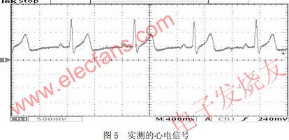 经试验证明,文中设计的心电信号采集电路能够得到临床上有价值的心电数据,为心电信号 的后续处理提供了可靠的保证。
