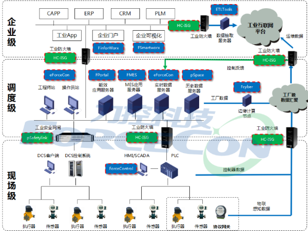 力控科技的ForceCon产品家族贯穿整个企业信息化业务,可以自由构建不同规模的应用,实现从底层工业现场控制(小型场站系统、嵌入式HMI)、到生产调度指挥管理(SCADA)及上层信息化管理(MES、ERP)的融合,也可以完全拥抱虚拟化云计算所带来的可扩展性,创建混合解决方案将数据推向云端,并保证其完整性,促进企业信息化融合。