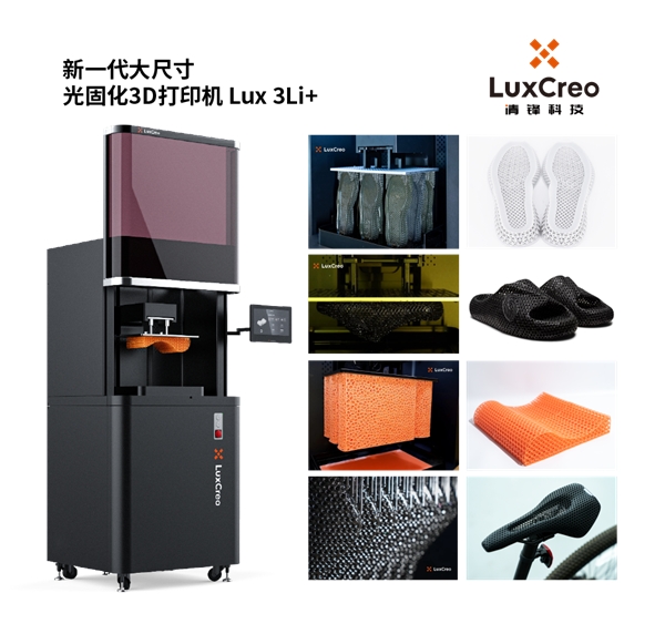 Lux 3Li+是新一代【大尺寸】DLP光固化3D打印机,打印面幅达400 × 259 x 380 mm,可以满足大尺寸产品的规模化生产需求,应用覆盖时尚消费、康复医疗、工业、汽车领域的同时,拓展至航空航天、运动器械等领域。