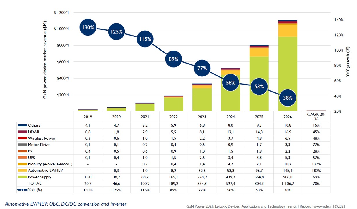 Yole Développement的最新调研报告显示,预计2026年全球GaN功率器件的市场规模达到11亿美元;在2020-2026年期间,该市场的年复合增长率将达到70%,其中消费类市场是主要驱动力。为了适应GaN功率器件的大规模量产需求,除了衬底外延等相关制造设备之外,针对功率器件关键工序的沉积镀膜设备也迎来了更庞大的市场需求以及量产化的全新挑战。