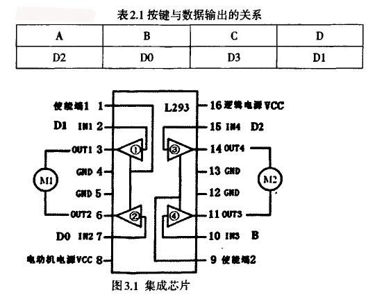 驱动系统采用集成芯片L293,内部主要南四个三态门构成,如图3.1所示,三态门①、②共用一个使能端1。当使能端接高电平时,两个