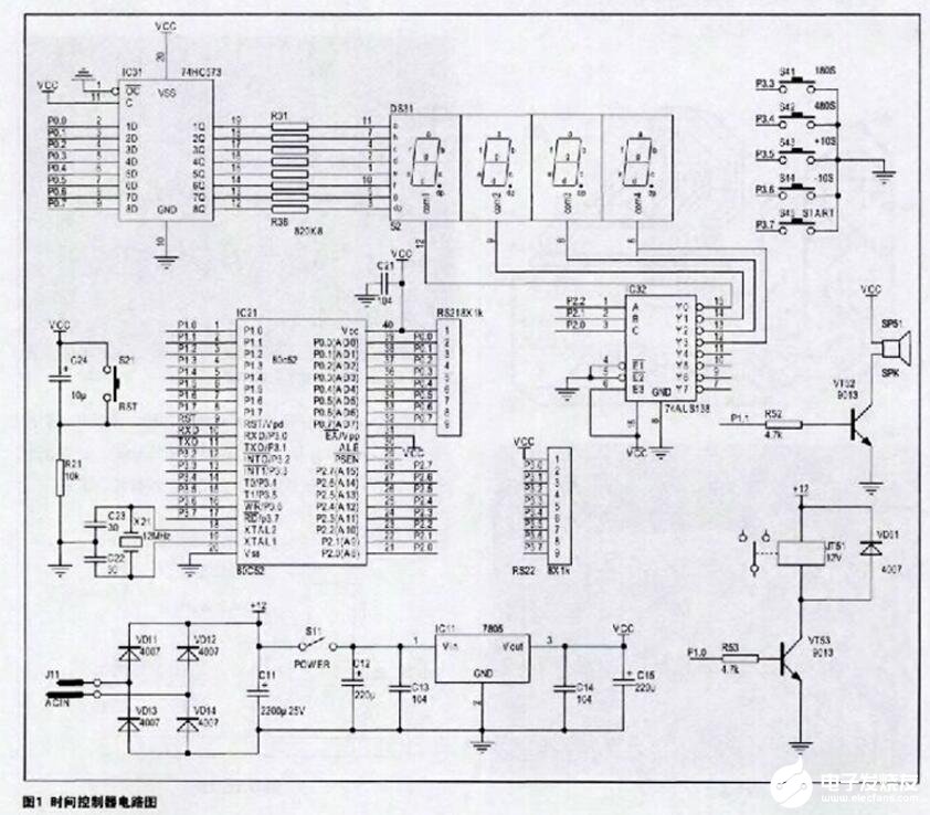 电路图由图1所示,主要包括电源部分,输入部分,输出部分,显示部分,控制部分。