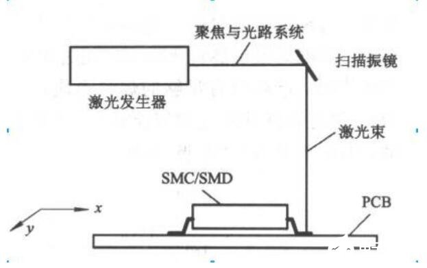 五、激光回流焊:是利用激光束优良的方向性和高功率的特点来焊接的。常用的有CO2激光和YAG激光两种。YAG的特点是可被锡膏迅速吸收,而不易被电路板的陶瓷基板等绝缘材料吸收。激光束的聚焦点可在0.3~1.5mm范围内调节。优点:加热过程局部化,不产生热应力,热敏元件不易受冲击。