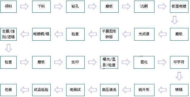 很多刚刚接触PCB的人都希望能够对PCB的流程有一个基础的认识。因此给大家几张图解流程,方便了解各个工序和加工顺序。