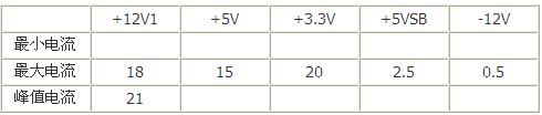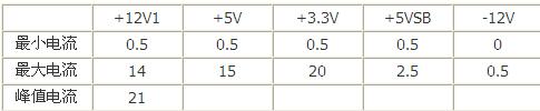 第八条 对+5V与+3.3V输出不作严格限制,对于一般计算机环境,要求+5V最大电流≧12A,+3.3V最大电流≧12A,+5V&+3.3V联合输出功率≧90W。在此基础上可以根据实际需要自行设定。建议设置为+5V/15A,+3.3V/20A,+5V&+3.3V联合输出功率不超过130W。
