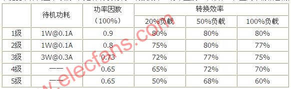 节能要求分为五个等级,内容分待机功耗、转换效率、功率因数三个部分。在国内市场销售的产品建议3级以上。