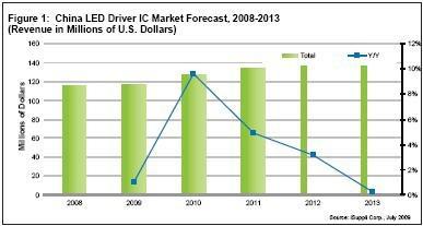图1 所示为iSuppli公司对中国LED驱动器IC市场的预测。