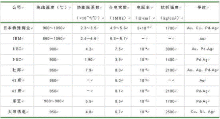 谐振频率的温度系数(τf)尽可能的小,大约在10-6数量级,最好为零。此外,考虑到加工及以后的应用,LTCC材料还应满足许多机械性能的要求,如弯曲强度σ、硬度Hv、表面平整度、弹性模量E及断裂韧性KIC等等。表3为一些公司的LTCC材料性能。