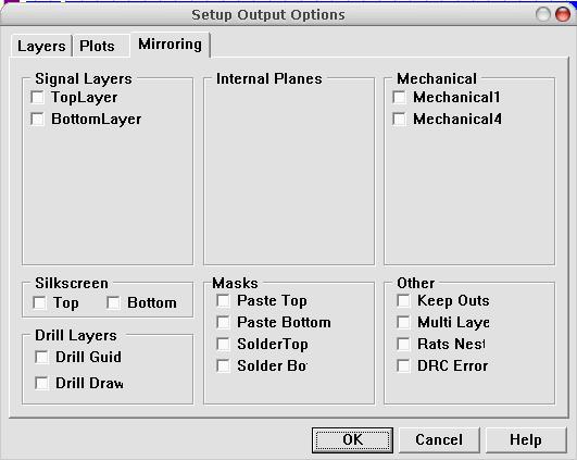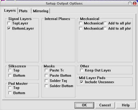 2、 将PCB图打印到热转印纸上,也就是不干胶贴纸的黄色光滑底衬纸。注意:刚刚的布线,单层板要布到底层,这样在打印时就不用镜像。如果是双层布,那么顶层一点要镜像,不然我们转印出来就反了。*作步骤:“setup Printer——HP LaserJet Final(这个选项是单层打印) ——Layers(选择要打印的层)——BottomLayer(这里只要底层,我们选择它),如果是双层,我们在打印TopLayer时点Mirroring在Signal Layers栏选中TopLayers表示镜像顶层。选好后OK确定。在刚刚那个菜单,点击Options在Show hol前面打勾,这个是显示钻孔的。这个打开在我们钻孔时将方便很多。点OK;点Print打印出图。
