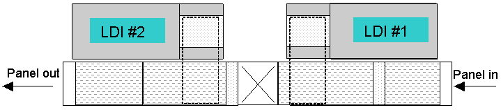 *不同的比例缩放模式 —在一些不适用新开发的LDI组焊剂的时候、或对新组焊剂还需要时间来验证时,开发的先进LDI比例缩放模式使LDI机的操作者能够把动态缩放限定为分段缩放组,这样造成每批中只有几组面板。在该工艺的后期,很容易生成照相版(膜)来对每组进行曝光,因为已经知道用LDI生成每组的比例因子并已经在外层图形曝光的过程中印在了面板上。