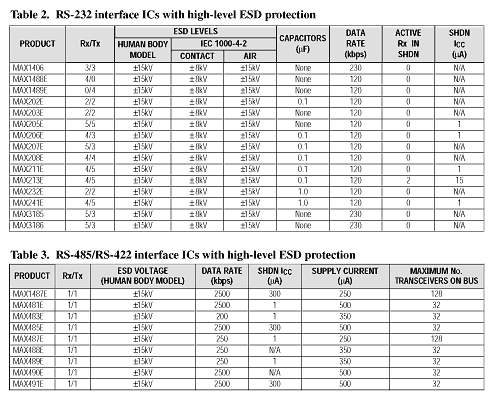 To overcome these limitations, manufacturers have repeatedly raised the level of ESD protection in their ICs. Maxim, for example, now provides ±15kV protection for RS-232 ICs, whether tested in accordance with IEC 1000-4-2 or the human body model.