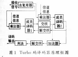 C.Berrou等学者于1993年首先提出了Turbo码这一信道纠错编译码新概念,它是在综合过去几十年来的级联码、乘积码、最大后验概率译码与迭代译码等理论的基础上的一种创新。Turbo码的基本原理是,通过编码器的巧妙构造,即多个子码通过交织器进行并行或串行级联(PCC/SCC),然后,以类似内燃机引擎废气反复利用的机理进行迭代译码,从而获得卓越的纠错性能,Turbo码也因此得名。