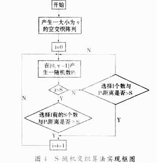 下面,我们讨论Turbo码交织器一种优化的设计方案。实际上,所有的Turbo码交织设计技术都是基于S随机交织产生算法的。在图4中,我们给出了S随机交织算法的实现框图。