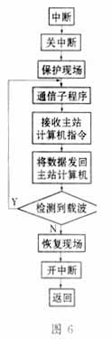 图6干扰引起CPU判断错误,脉冲采集软件增加了消抖动功能,见图4。本系统设计调试中的重点还有下位机的主机与远方管理计算机的数据传输过程,其程序流程图如图5所示,图6是中断服务子程序。