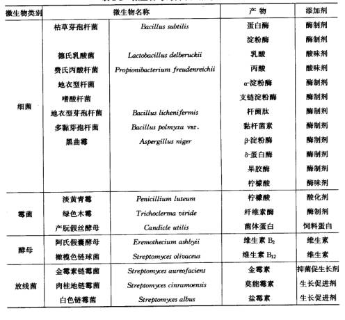 表2-2 微生物与饲料添加剂原料生产