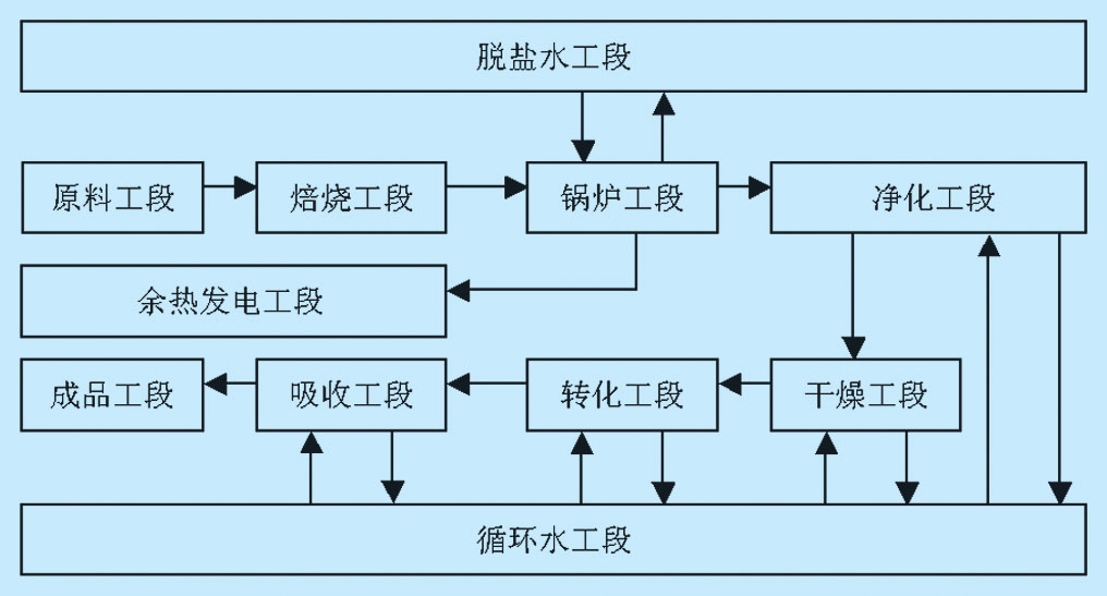 图1 硫酸生产及余热发电工艺流程图