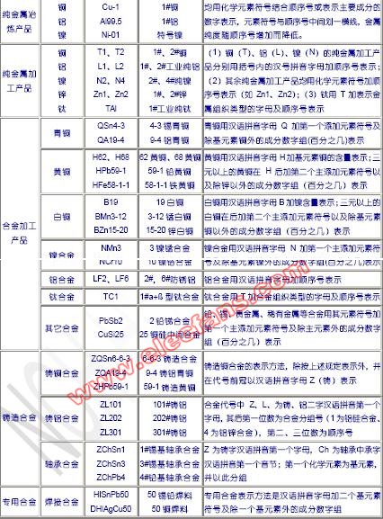 所属大类,如用L 或AL 表示铝,T 或Cu 表示铜。主题词以后,用成份数字顺序结合产品类别来表