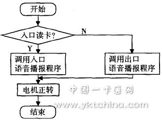 控制闸杆机的起落即是控制闸杆机的直流电机的正反转,通过单片机控制口输出高低电平配合继电器工作,直流电机电机两端加正反电压可以实现正反转。对于时间的记录,这里选用DS1302日历芯片,DS1302可以对年、月、日、周、时、分、秒进行记录.可接入后备电源,在主电源关闭的情况下也能始终保持连续工作,单片机SPCE061A可以随时读取当前的时间。与上位机的通信利用SPCE061A的通用异步串行通信模块(UART),它提供了一个全双工标准接口,借助于IOB口的特殊功能和UART IRQ中断实现与上位机配置的RS一232串行通信接口COM链接,实现了数据的及时传输。另外,语音提示部分利用SPCE061A的语音处理优势。利用SPCE061A的语音压缩算法库和内置的DAC等,即可实现清晰的语音播报功能,无需外加语音芯片。