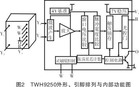 TWH9250 模块的外形、引脚排列及内部电路功能框图如图2所示。