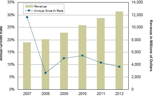 图示2007-2012年中国汽车信息娱乐市场销售额与预测
