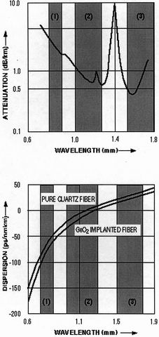在光链路的发送端,激光二极管或LED把电位流序列变换为光脉冲。通常在电信网络中用第2和第3光窗口经标准光缆发送信息(见图3)。在光窗口内,信号得益于每光纤长度单位较小的色散和较小的衰减。用“激光器驱动器”单元调制激光二极管或LED(见图1)。