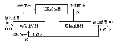 压控振荡器的输出Uo接至相位比较器的一个输入端,其输出频率的高低由低通滤波器上建立起来的平均电压Ud大小决定。施加于相位比较器另一个输入端的外部输入信号Ui与来自压控振荡器的输出信号Uo相比较,比较结果产生的误差输出电压UΨ正比于Ui和Uo两个信号的相位差,经过低通滤波器滤除高频分量后,得到一个平均值电压Ud。这个平均值电压Ud朝着减小VCO输出频率和输入频率之差的方向变化,直至VCO输出频率和输入信号频率获得一致。这时两个信号的频率相同,两相位差保持恒定(即同步)称作相位锁定。